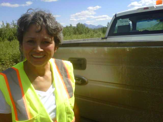 This is Loretta, she was my driver in the pilot truck that took me 7 miles through road construction as I made my way from Nenana to Healy on Saturday.