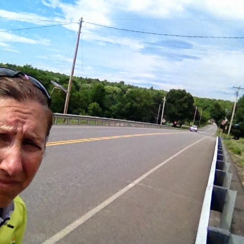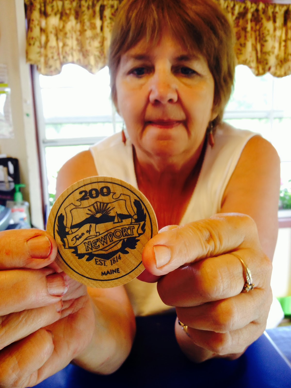 (Left) Stopped for a break at Bradstreet Farm. Juanita talked about Newport celebrating its 200th anniversary. She spoiled me with a commemorative wooden nickel and a bag full of fresh peas.