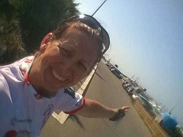 Sunny and warm; wish you were here Another day at the office. Headed to Rome; about 80 kilometers to go. Hoping to stay on the coast. Brilliant sun and warm temps near 80.