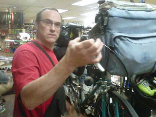 Pat and “Max” gave me a lift from Homer to Soldotna where we stopped at a bike store – Beemun’s Bike and Ski ; Brad and Brian tuned up my gears.