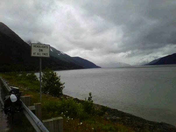 Today’s View From the Office…. Hwy 1 south. The bluff, a road, a rumblestrip and me. Boat ramp from Hwy 1…. Hwy 1, 9 miles south of Girdwood…just entering Chugach State Forest
