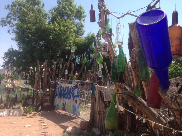 The colorful glass bottles are beautiful. The rest of the front yard is very Sanford & Son.