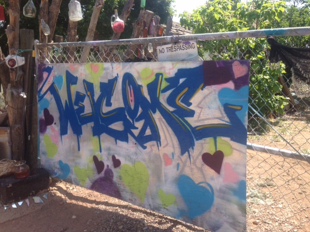 Following my brief siesta I come across the home of ‘the mayor’ of Golden. #sarcasm. He’s the local eccentric that has a glass bottle display in his front yard with a confusing series of signage. ‘Welcome,’ ‘No trespassing’ and ‘Free information about Golden.’
