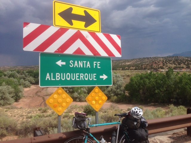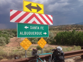 Headed out at 4:30 a.m. Thursday morning to beat the heat and make it 64 miles from Albuquerque to Santa Fe via the Turquoise Trail.