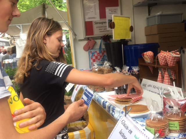 During a slow moment we caught up with a maker of the famous Stroopwafel, a specialty of the Netherlands made of a simple batter with a syrup spread in the middle. See video below.