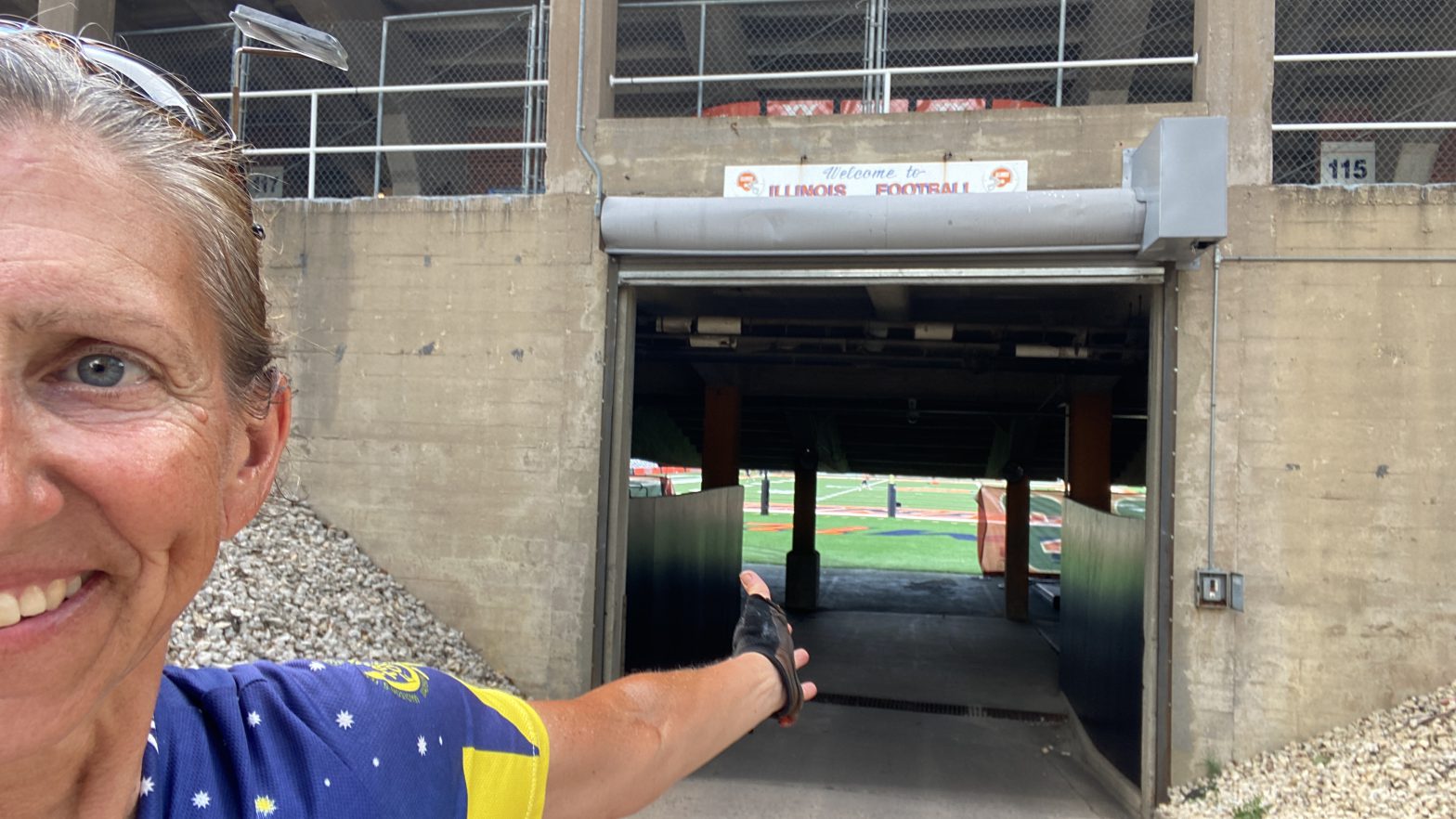 Interesting day as someone left the door open to the University of Illinois “Fighting Illini” Memorial Stadium and someone rolled right onto the turf field.
